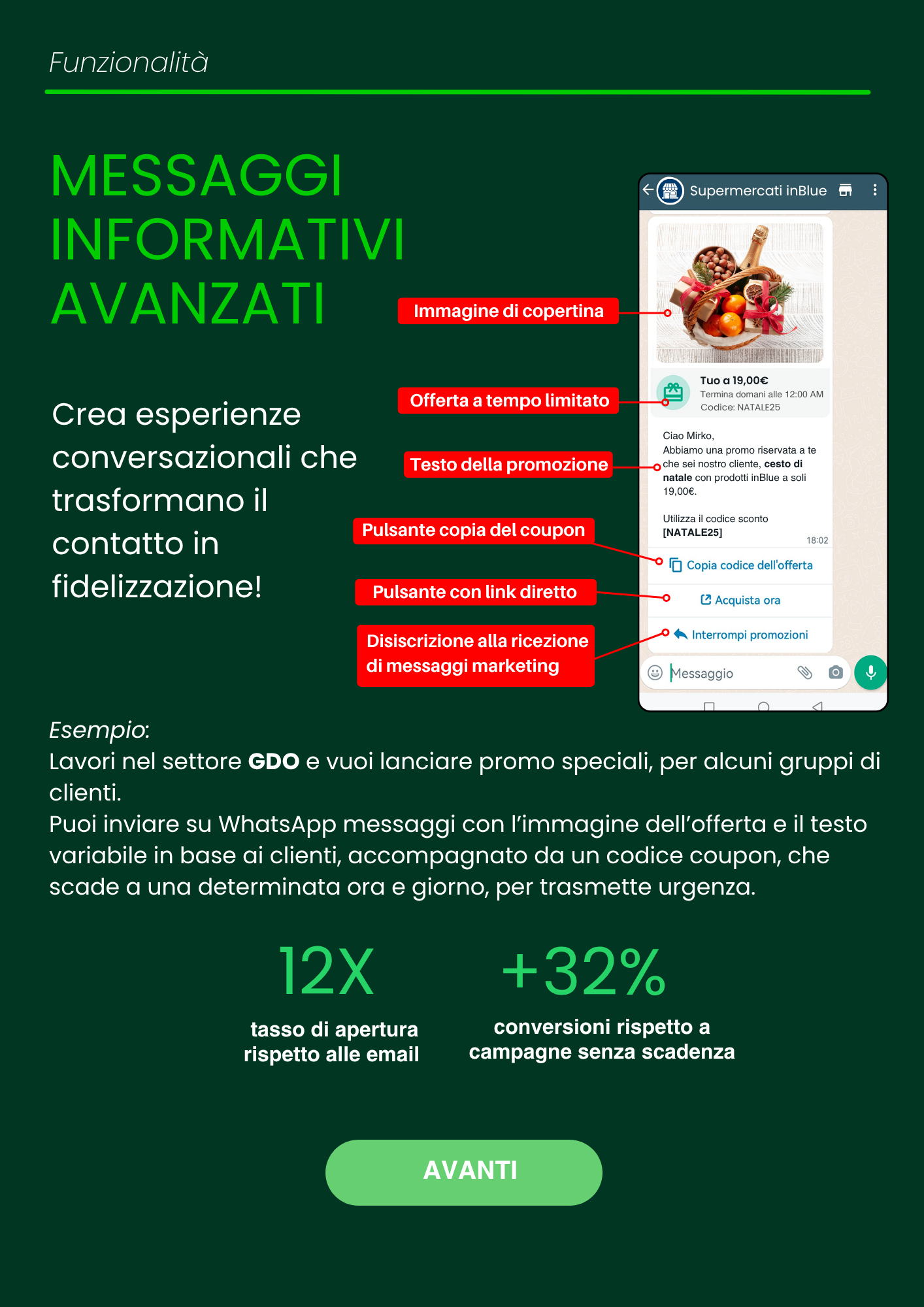 Alert automatici su WhatsApp per saldo punti e coupon in scadenza che spingono il cliente alla cassa
