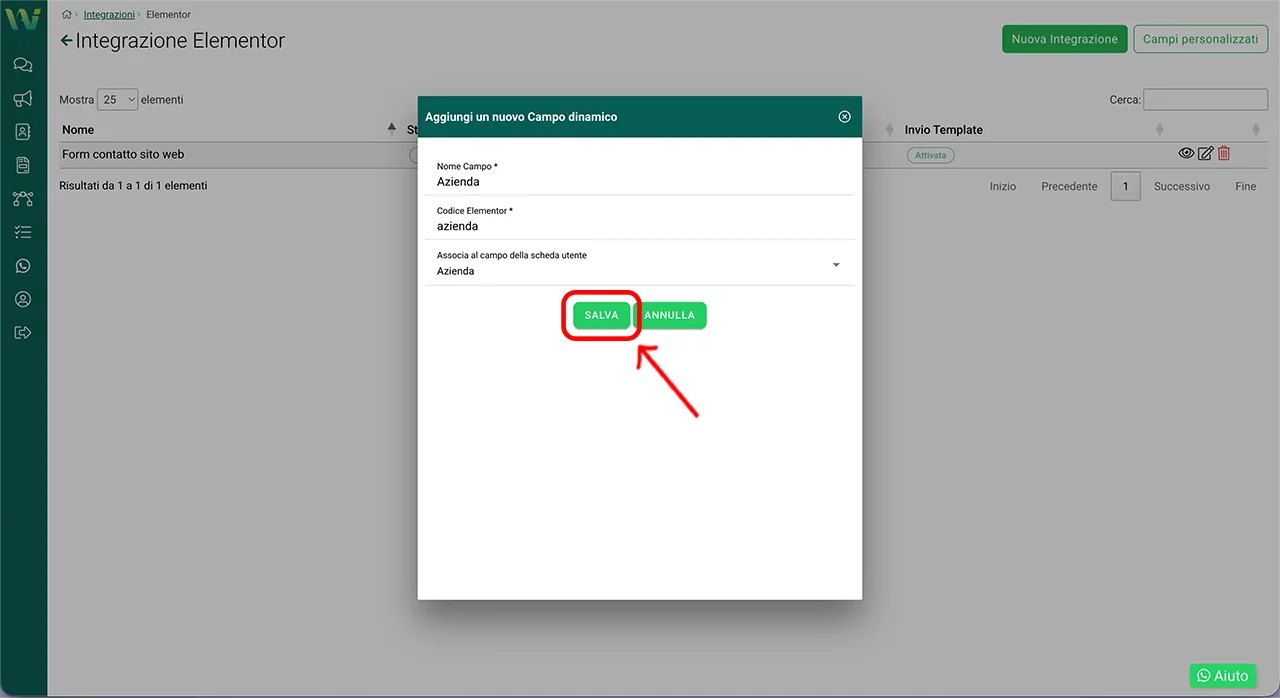 Dopo aver completato la configurazione, Associato ogni campo dinamico cliccate su Salva per confermare le modifiche.