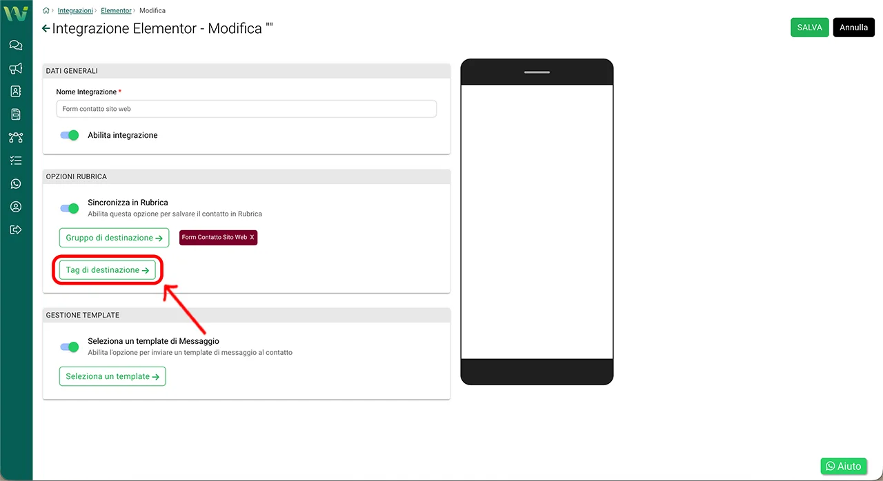 Per completare l’integrazione, è necessario collegare il form creato con Elementor al trigger configurato su WA Smart Business.
