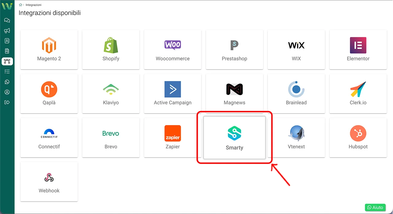Da qui, individuate e selezionate il logo di Smarty per accedere alla schermata dedicata all’integrazione.