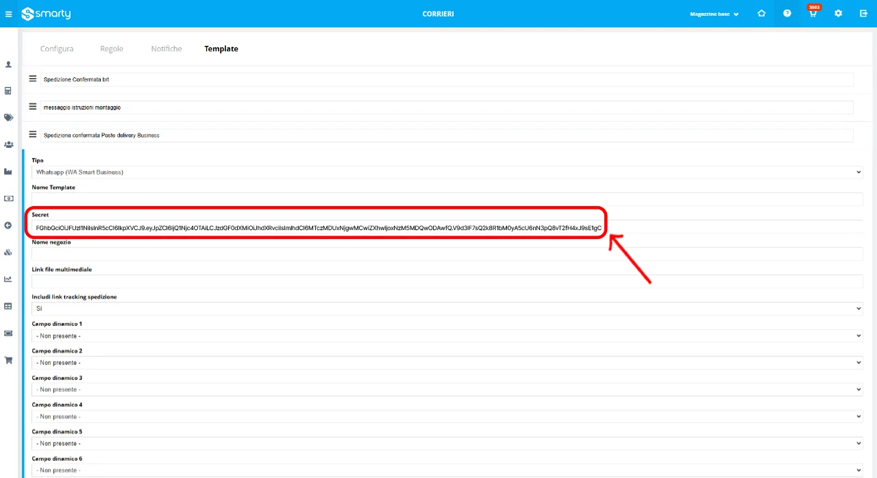 Configurando correttamente Secret Key, template e campi dinamici, l’integrazione risulterà completamente automatizzata e vi permetterà di sfruttare al massimo il canale WhatsApp per le comunicazioni di spedizione